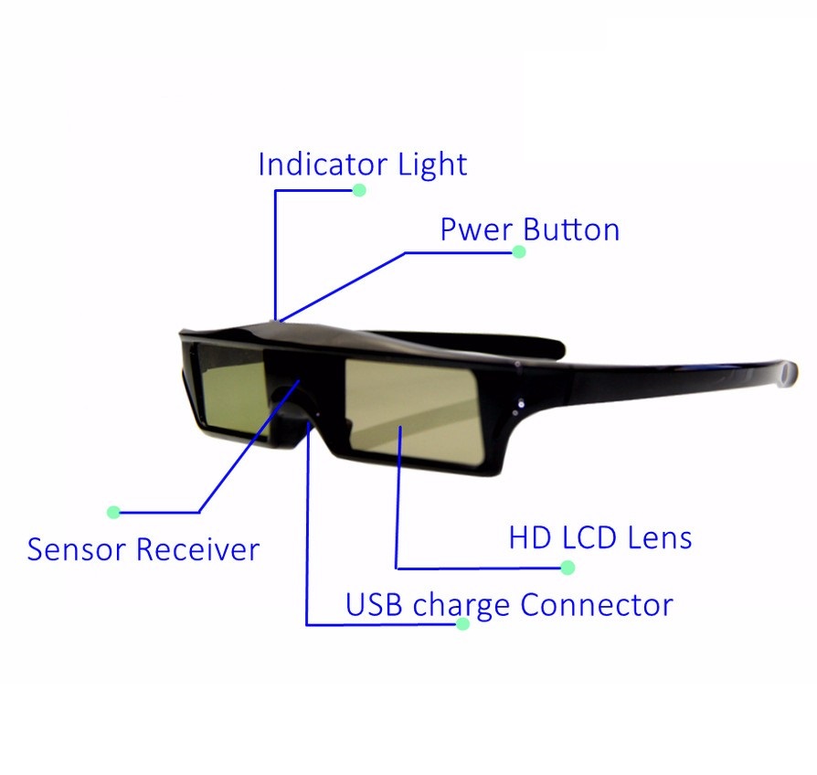 3D Glasses Type: Active shutter glassesSynchronous: Bluetooth/RFDisplay Compatibility: 3D TVs and 3D ProjectorsFrequency: 96-480HzBattery Type: MicroUSB Cable Rechargeable