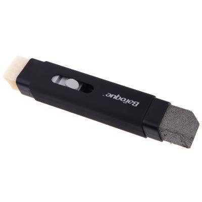 Features: Guitar string cleaner with two heads: one removes the rust and the other lubricates the string. Slide control system, easy to operate. Lid covers on the both heads for preventing volatilization of grease. Compact designed, generous appearance, easy to carry.