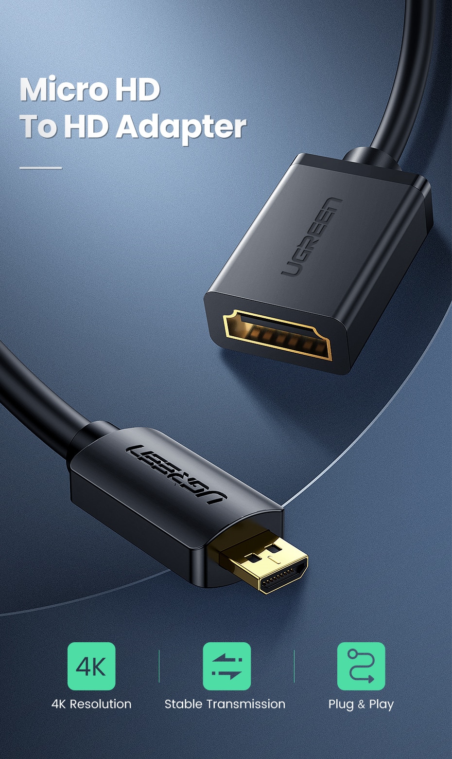 Ugreen Micro HDMI Adapter HD4K Micro Mini HDMI Male to HDMI Female Cable Connector Converter for Raspberry Pi 4 GoPro HDMI Micro 4.9