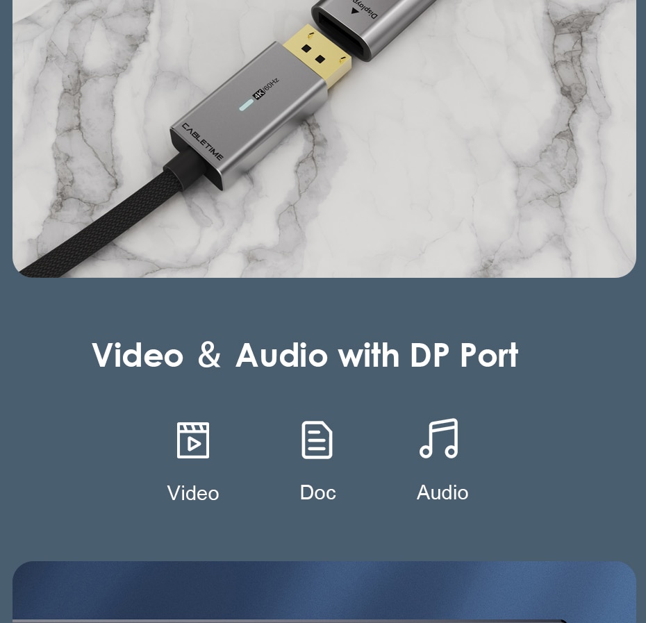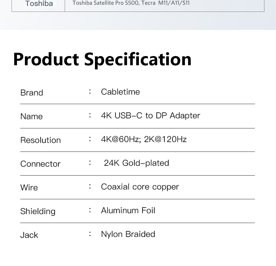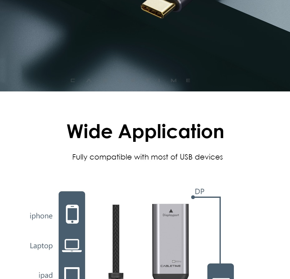 CABLETIME Type C to Displayport Adapter 4K 60Hz USB C DP Converter for Macbook Air Dell Laptop DP Converter N375