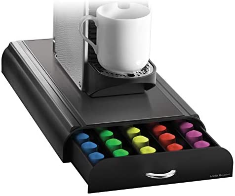 Place your single serve Nespresso coffee machine on top to save valuable counter space in your office or home. Also compatible with DeLonghi Lattissima