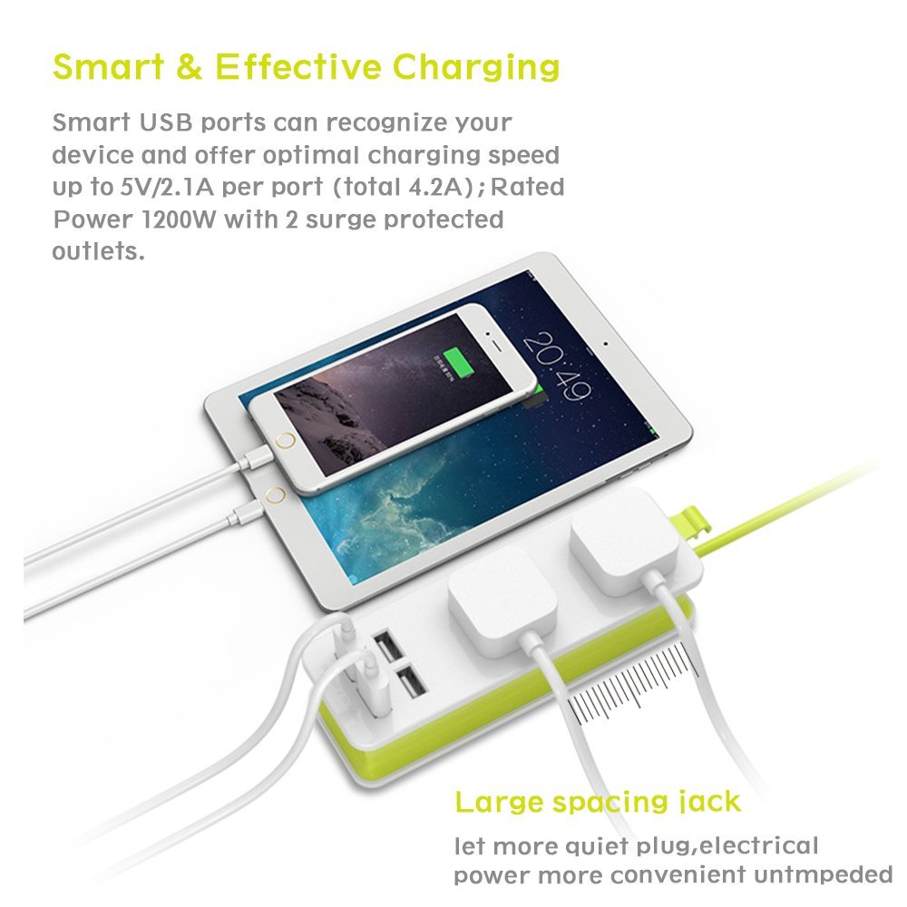 the power strip has 4 USB ports including 2*2.1A smart ports and 4*1A ports, with SmartID technology. It recognizes your device
