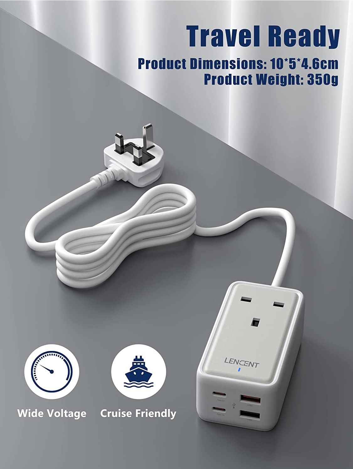 【Mini Size & Travel Ready】Lightweight(350g), compact (10*5*4.6 cm) body and travel-friendly design make the LENCENT USB-C charger the ideal multi-device charger wherever you go. 1.5m extension cord allows you to keep the USB charging station in an unobtrusive location while making sure it reaches your devices. No more blocks, clean up around your desk.