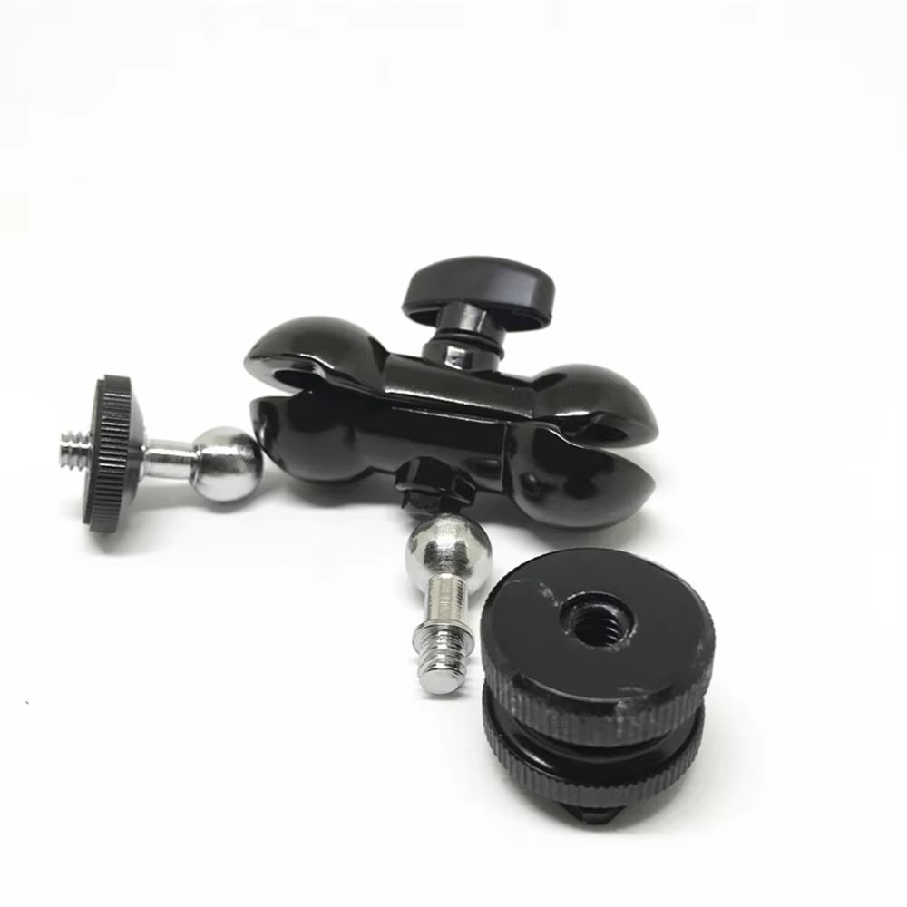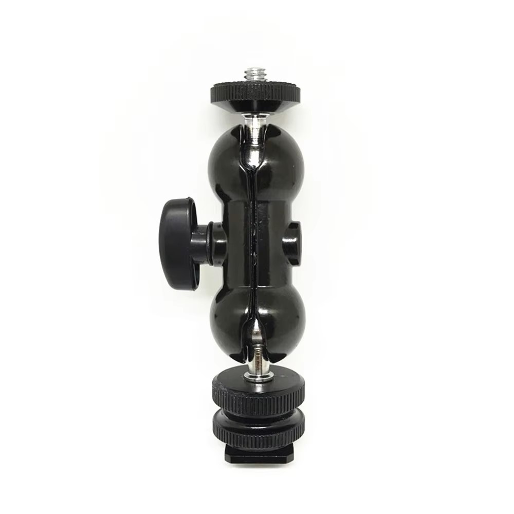 1/4" Mount to Hot Shoe Adapter Double Ball Head Bracket Magic Arm Mini Ballhead for Monitor LED Video Light