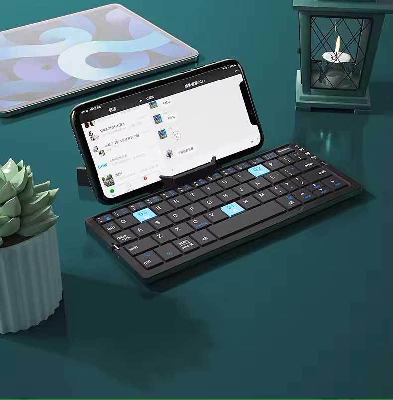 BOW Mini Folding Bluetooth Keyboard Wireless Keypad Support3 Devices With Stand Rechargeable Foldable Keyboard for Phone Tablet