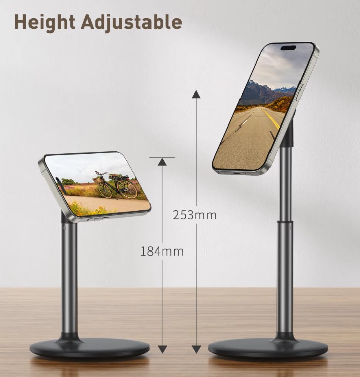 Magnetic Desk Phone Stand for iPhone16 15 14 13/12 - Phone Holder Dock with 360°Rotation, Height&Tilt Adjustable for Office/Home