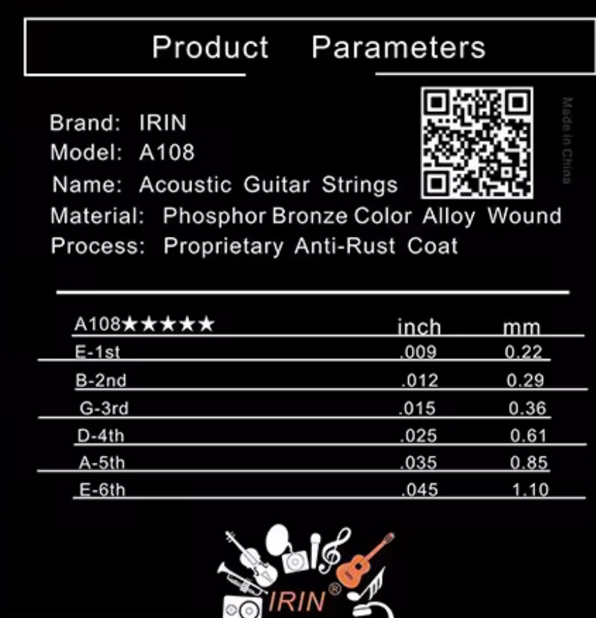 IRIN 6Pcs/Set Acoustic Guitar Strings Stainless Steel Wire Copper Alloy Wound Silver Plated