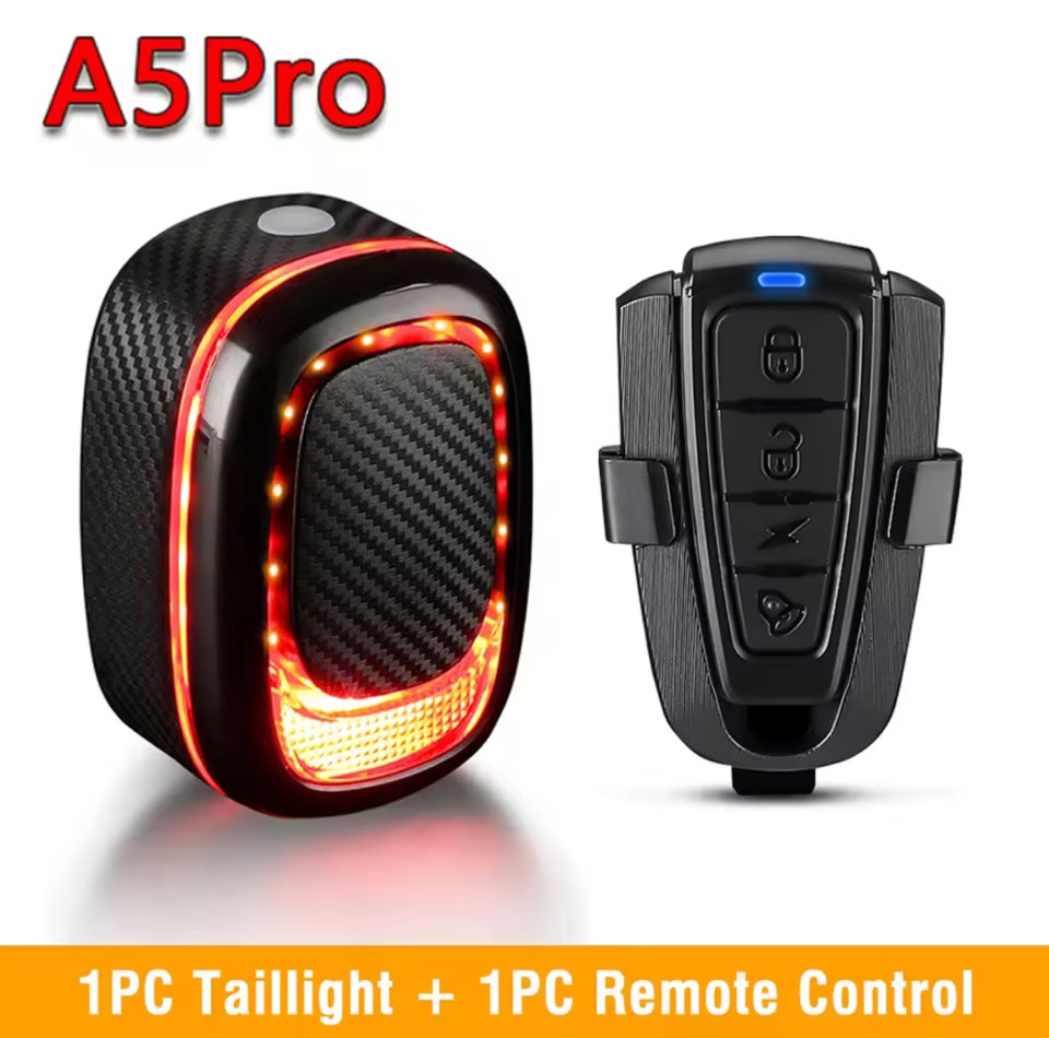 Bicycle Alarm Taillight Anti Theft Bike Light Smart Auto Brake Sensing Remote Control USB Charging Waterproof Lamp
