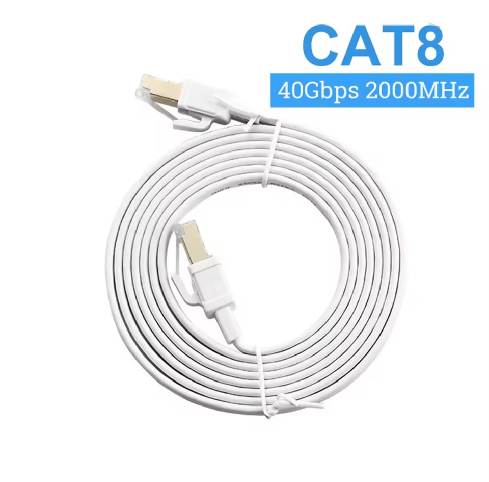 White Cat8 Ethernet Cable Flat Lan Cable High Speed RJ45 40Gbps For Home Networking Router Modem
