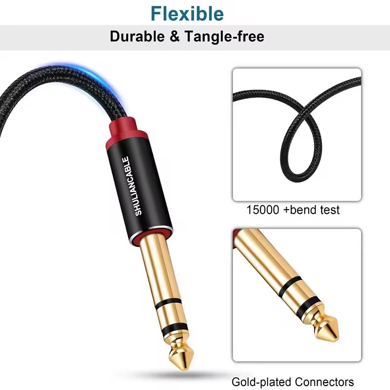 6.35mm guitar cable : Gold-plated 6.35mm jack 1/4 TRS cable. This jumper is equipped with a 1/4 TRS connector. It is the connection between professional audio and DJ equipment