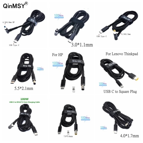 1.5M 100W PD USB Type C To Notebook Laptop AC Power Supply DC Adapter Charger Cable Cord Jack Plug For Hp Asus Lenovo Dell SONY